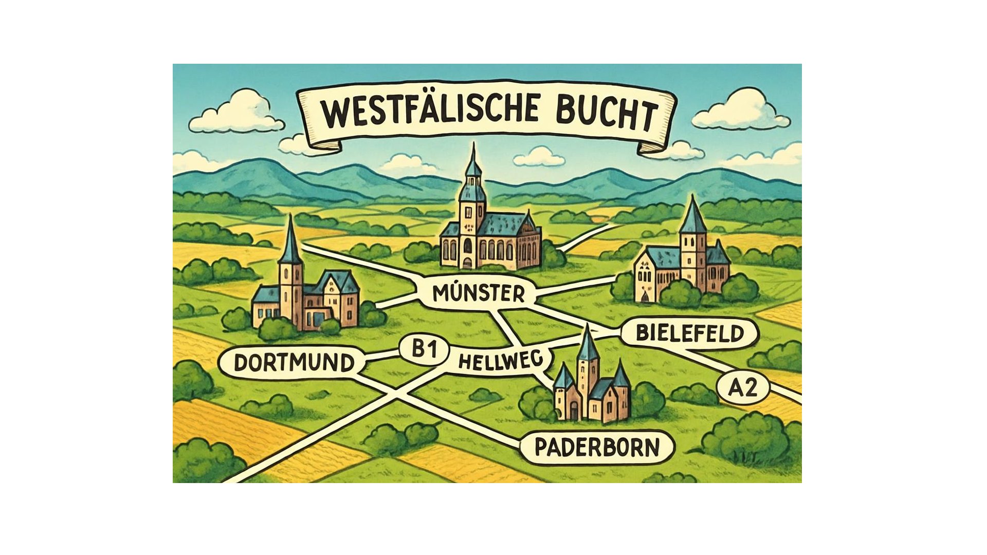 Die Westfälische Bucht ist das „sammelnde“ Zentrum Westfalens – topographisch, wirtschaftlich und kulturell. Ihr polyzentrisches System erklärt, warum Westfalen nie eine dominante Hauptstadt hervorgebracht hat, sondern stattdessen eine Balance vielfältiger Identitäten bewahrte.